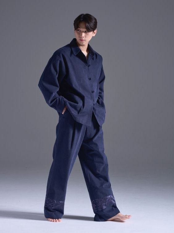 한복의 우아한 곡선을 힘있는 위싱 코튼소재으로 사용하여 구조감있는 워크 자켓형식의 한복자켓 SET UP입니다.