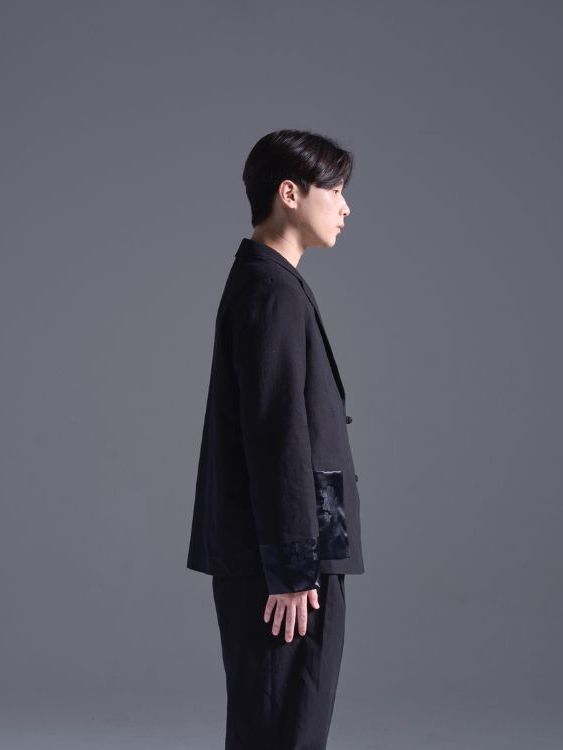 ( CHIC 1.0 ) 고급스러운 실크소재에 잔잔하게 모란꽃 무늬가 놓여져있는 전통 한복원단을 소재로 제작한 클래식한 한복 정장 블레이저입니다.